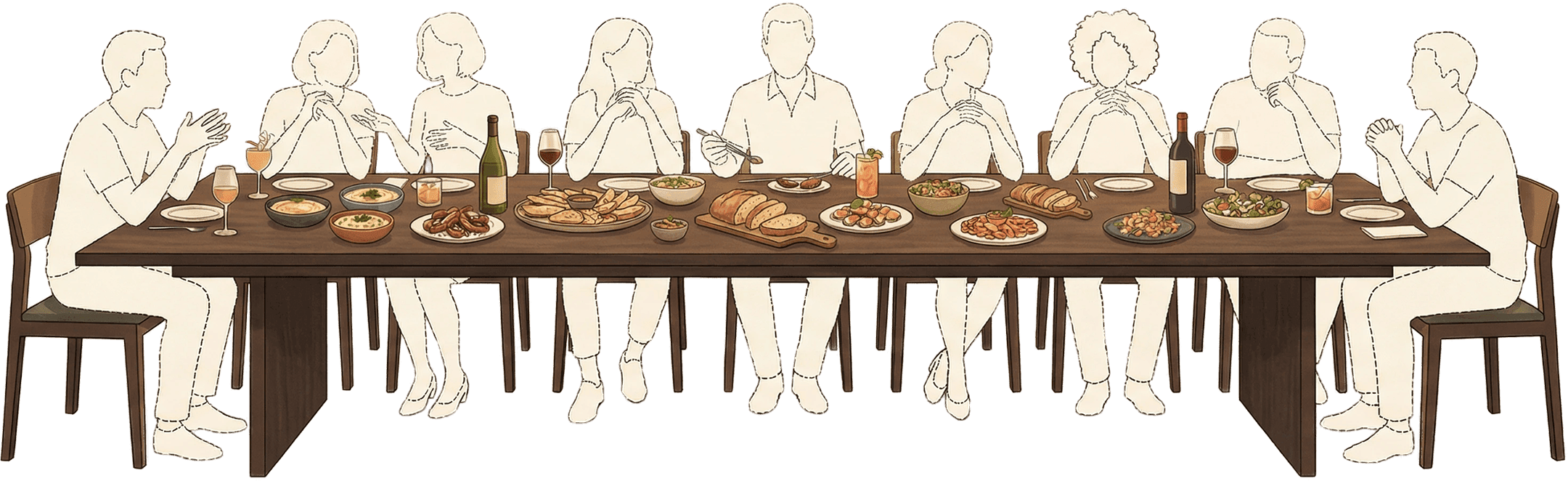 Камерные интеллектуальные ужины с интересными людьми и живым диалогом.